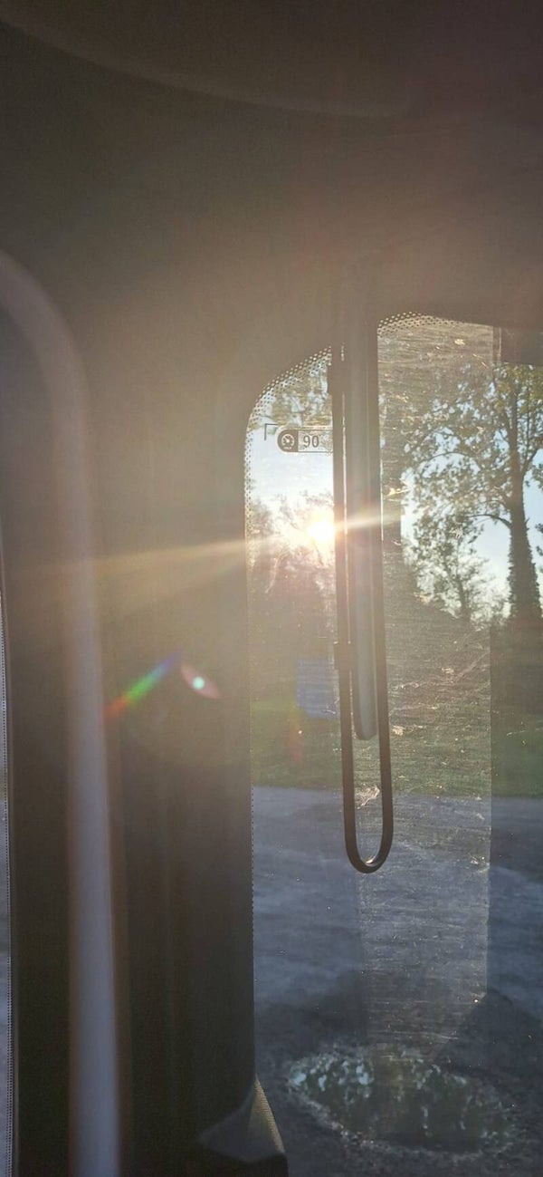 Tijdens het rijden: Draai de zonnewering naar voren om extra schaduw te creëren aan de zijkant van de cabine. Ideaal bij laagstaande zon of felle lichtinval.
